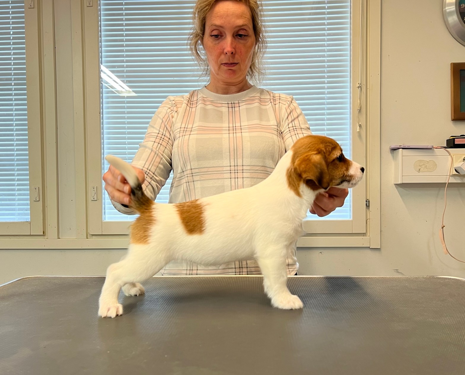 Pentueeseen tuli kaikkia karvanlaatuja joista tÀmÀ tyttö on ns. Slightly Broken eli lyhytkarva joka on karkeahko , eikÀ vaadi varsinaista trimmausta kuten karkeakarvainen tai puolikarkea .